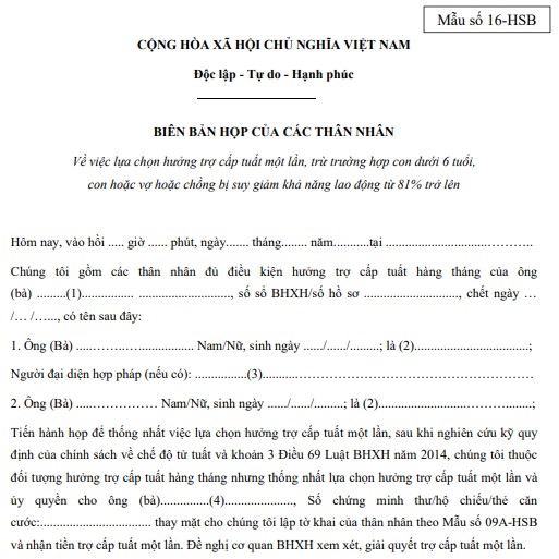Mẫu biên bản họp của thân nhân hưởng chế độ tử tuất