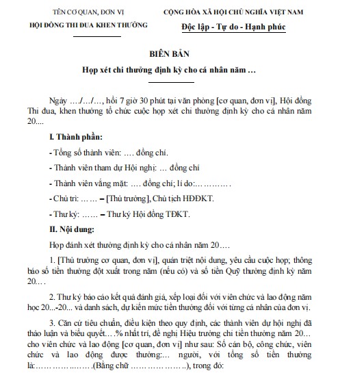 Mẫu phiếu biểu quyết khen thưởng tổ chức Đảng