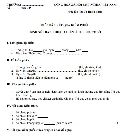 Biên bản làm việc của hội đồng chấm thi Học sinh giỏi