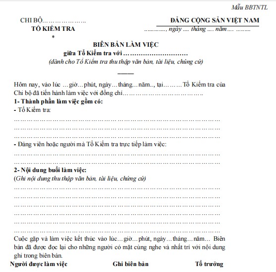 Hôm nay, vào lúc …giờ…phút, ngày…tháng…năm.., tại………Tổ Kiểm tra của Chi bộ đã tiến hành làm việc với đồng chí………………………………..