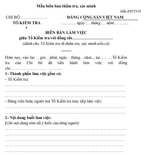 Biên bản thẩm tra, xác minh trong công tác kiểm tra Đảng