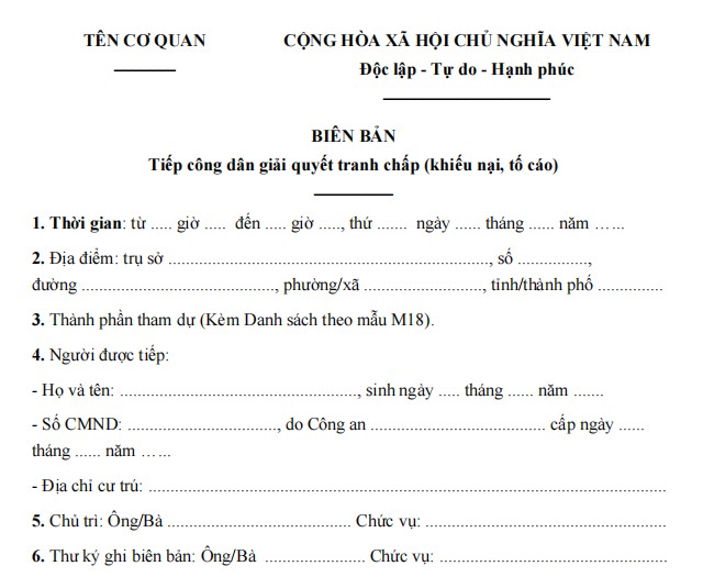 Mẫu biên bản tiếp công dân giải quyết tranh chấp mới nhất
