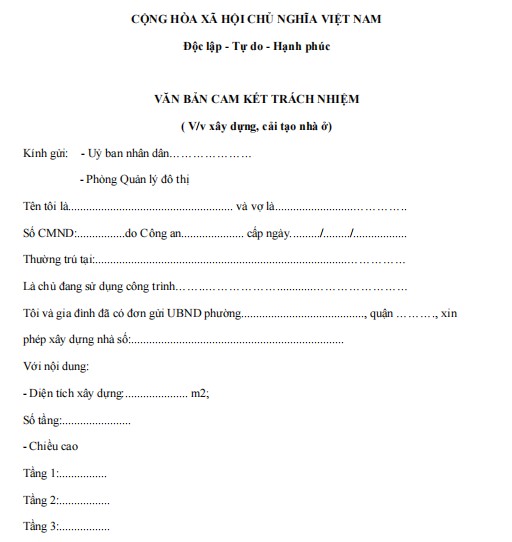 Mẫu cam kết chịu trách nhiệm xây dựng, cải tạo nhà ở