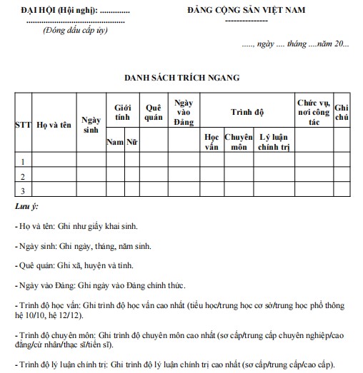 Mẫu Danh sách trích ngang chi ủy chi bộ