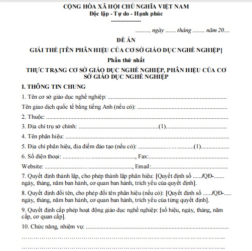 Mẫu đề án giải thể phân hiệu của cơ sở giáo dục nghề nghiệp (PDF)