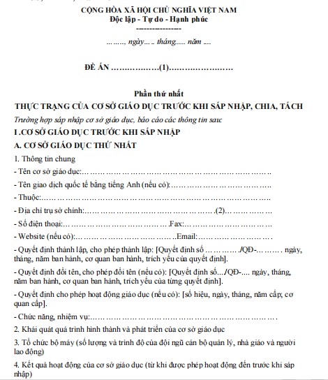 1. Biểu mẫu đề án sáp nhập trường tiểu học, THCS, THPT, mầm non