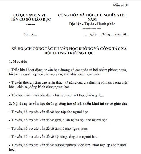 Mẫu dịch vụ tư vấn học đường và công tác xã hội