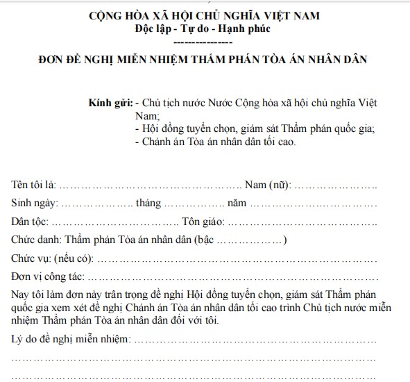 Mẫu đơn đề nghị miễn nhiệm thẩm phán tòa án nhân dân