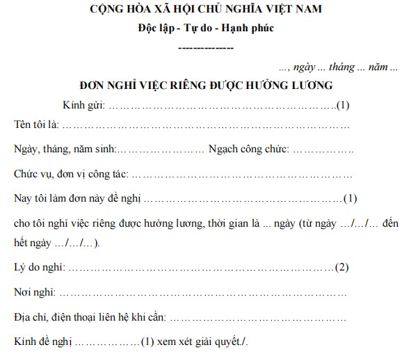 Mẫu đơn nghỉ việc riêng được hưởng lương