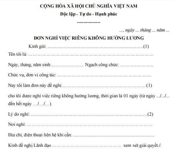 Mẫu đơn nghỉ việc riêng không hưởng lương
