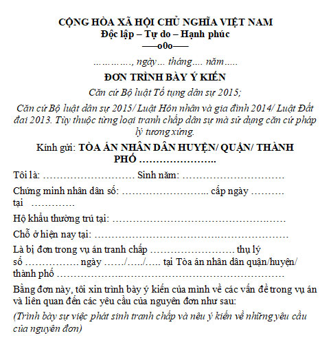 ĐƠN TRÌNH BÀY Ý KIẾN
