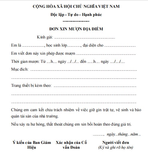 Mẫu đơn xin mượn địa điểm