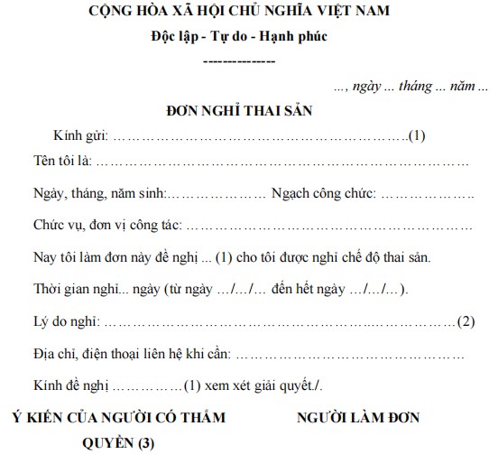 Nay tôi làm đơn này đề nghị ... (1) cho tôi được nghỉ chế độ thai sản.