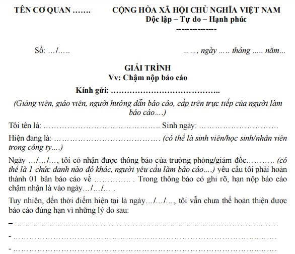 2. Nội dung mẫu giải trình chậm nộp báo cáo
