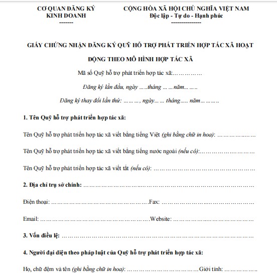 Mẫu giấy chứng nhận đăng ký quỹ hợp tác xã mới nhất 2026