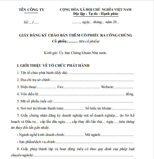 Mẫu giấy đăng ký chào bán thêm cổ phiếu ra công chúng