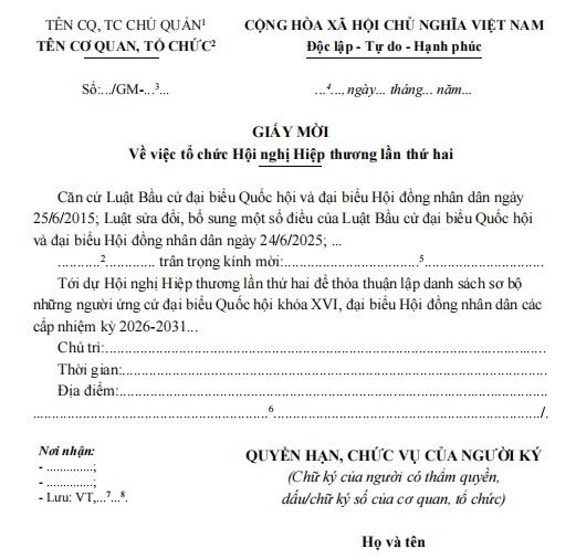 Mẫu Giấy mời Hội nghị hiệp thương lần thứ hai