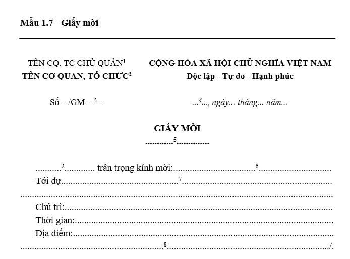 Mẫu 1.7 - Giấy mời