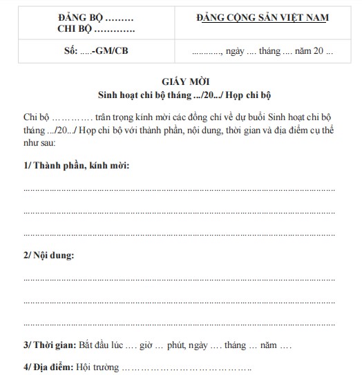 1. Giấy mời sinh hoạt chi bộ hàng tháng sau sáp nhập