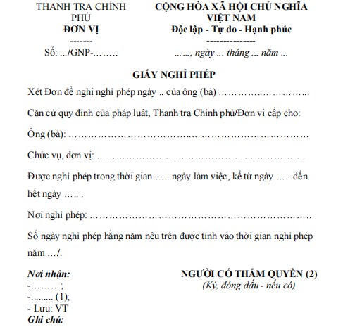 Biểu mẫu xin nghỉ phép chuẩn hành chính