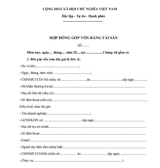 1. Mẫu hợp đồng góp vốn bằng tài sản năm 2025