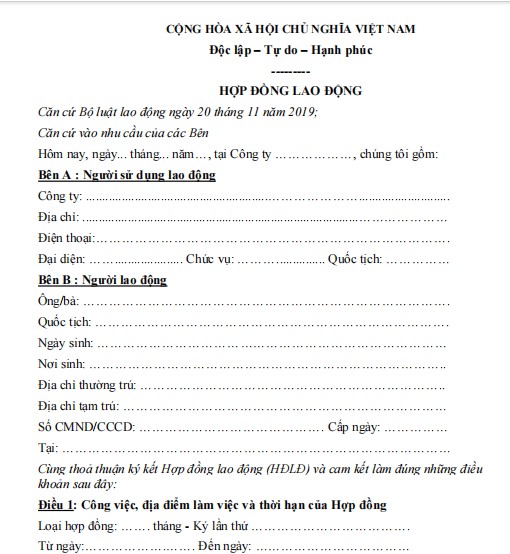 Mẫu Hợp đồng làm việc xác định thời hạn mới nhất