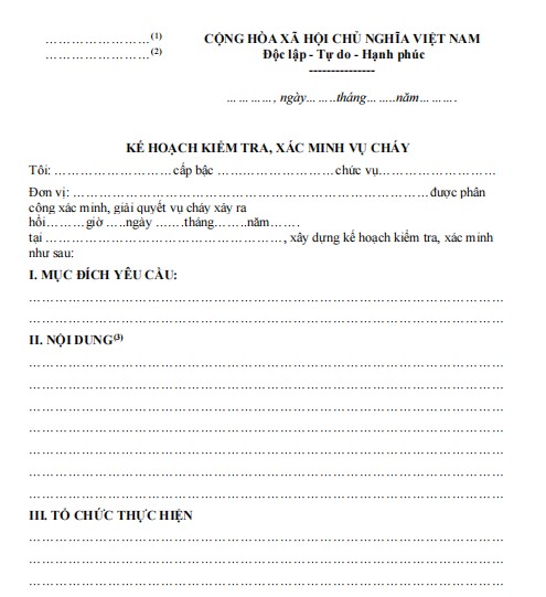 Hướng dẫn xây dựng Kế hoạch kiểm tra, xác minh vụ cháy theo Mẫu số 06