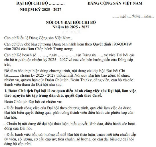 Mẫu nội quy đại hội chi bộ 2025 - 2027 (tệp PDF)