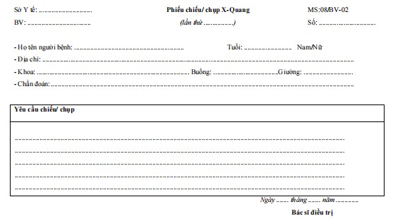 Mẫu phiếu chiếu, chụp X quang