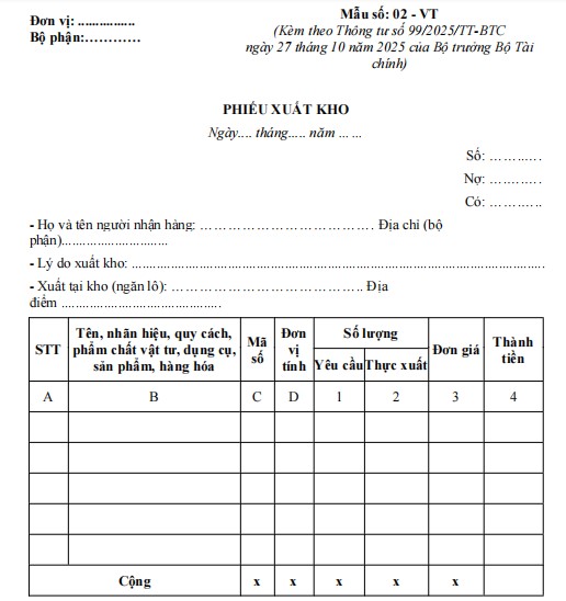 - 4. Hướng dẫn viết phiếu xuất kho theo Thông tư 99/2025/TT-BTC - Mẫu 02 - VT