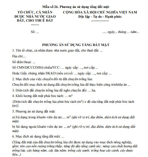 Mẫu số 26. Phương án sử dụng tầng đất mặt