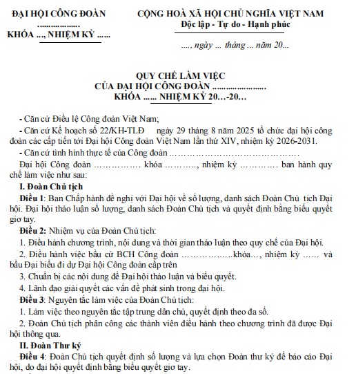 Mẫu quy chế làm việc của Đại hội công đoàn (PDF)