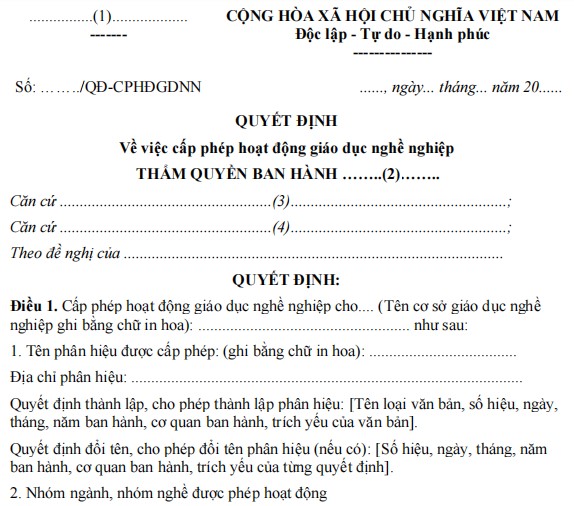 Mẫu thông báo cam kết chất lượng giáo dục của cơ sở giáo dục mầm non