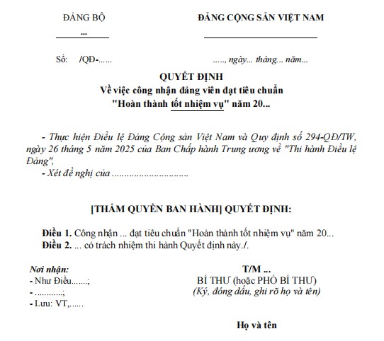 Mẫu biên bản công bố quyết định kỷ luật Đảng viên