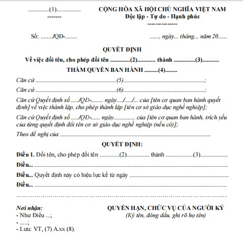 1. Quyết định đổi tên hoặc cho phép đổi tên cơ sở giáo dục nghề nghiệp