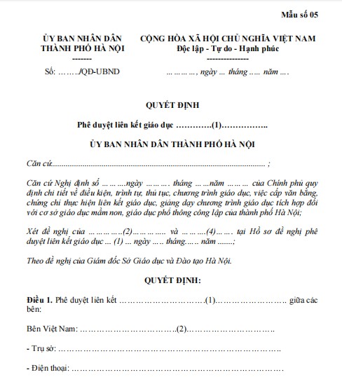 Mẫu Quyết định phê duyệt liên kết giáo dục