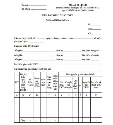 Mẫu số 01-TSCĐ: Biên bản giao nhận tài sản cố định