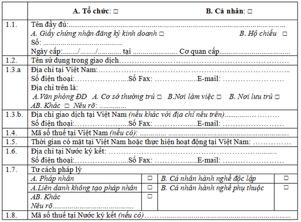 1Trường hợp người nộp thuế ủy quyền cho đại diện hợp pháp thực hiện thủ tục áp dụng Hiệp định, bên ủy quyền và bên được ủy quyền phải thực hiện các quy định về công chứng và chứng thực của pháp luật hiện hành, đồng thời bên được ủy quyền phải kê khai đầy đủ các thông tin tại phần 1 và 2 của Giấy đề nghị này.