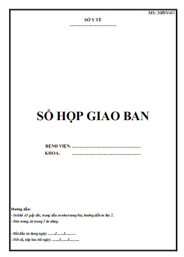 Mẫu sổ họp giao ban là biểu mẫu quan trọng được các bệnh viện, khoa, phòng ban chuyên môn lập ra nhằm ghi chép đầy đủ, chính xác toàn bộ nội dung của các buổi họp giao ban định kỳ. Trong sổ họp giao ban, các nội dung được trình bày rõ ràng, bao gồm: nội dung họp giao ban hằng ngày hoặc hằng tuần, các báo cáo với ban thường trực lãnh đạo bệnh viện, báo cáo tình hình chuyên môn, báo cáo công tác cận lâm sàng và những vấn đề tồn đọng cần được chỉ đạo, giải quyết kịp thời.