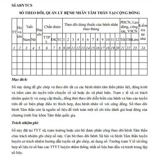 Mẫu sổ theo dõi, quản lý bệnh nhân tâm thần tại cộng đồng