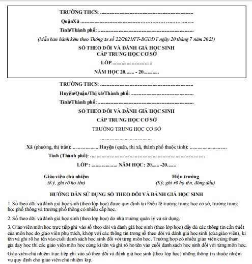 Biểu mẫu theo dõi và đánh giá học sinh trung học cơ sở