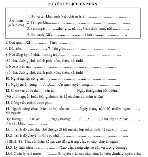 Mẫu sơ yếu lý lịch cá nhân