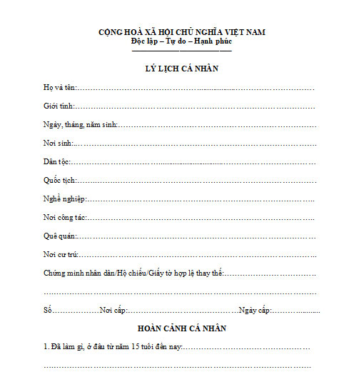 2. Mẫu sơ yếu lý lịch kết hôn với bộ đội chuẩn