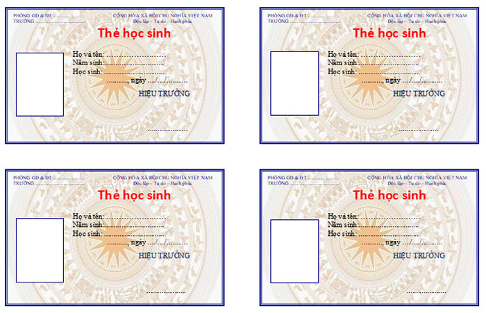 Mẫu thẻ học sinh bản Word