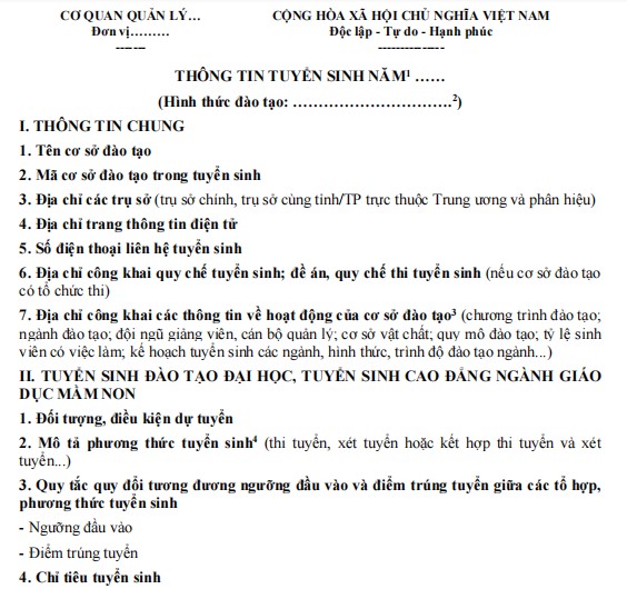Mẫu thông tin tuyển sinh đại học, cao đẳng