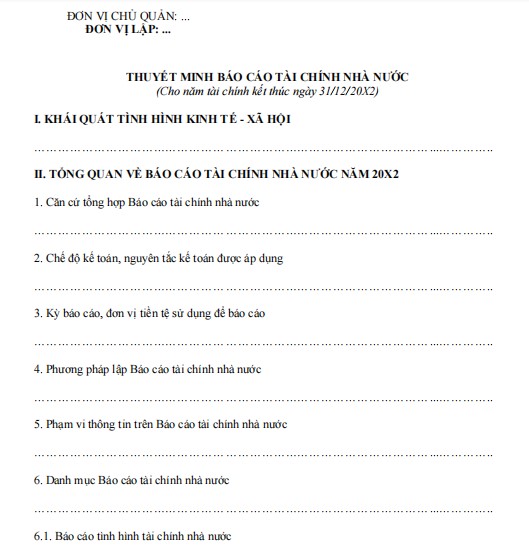 1. Biểu mẫu thuyết minh báo cáo tài chính nhà nước