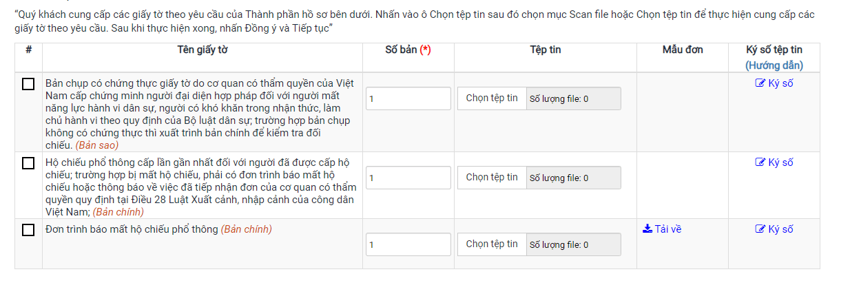 + Trường hợp mất hộ chiếu, phải tải lên đơn trình báo mất hộ chiếu.