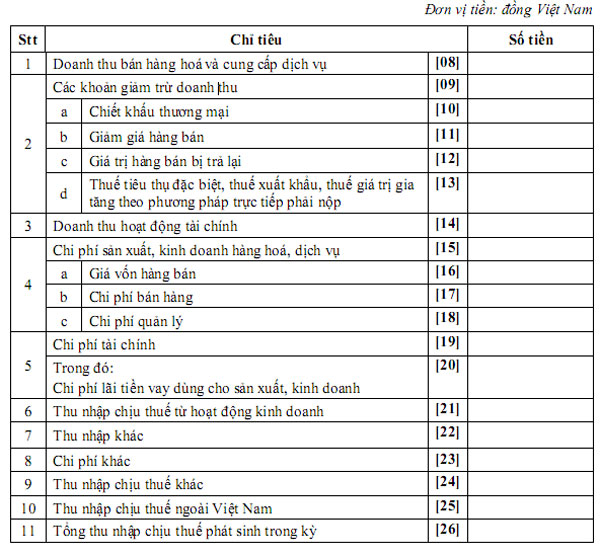 Mẫu thuyết minh báo cáo tài chính quyết định 48