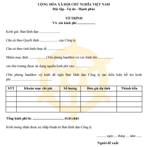 1. Mẫu tờ trình xin kinh phí hoạt động trong công ty
