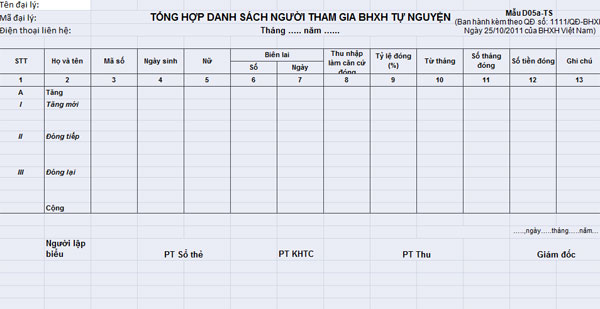Mẫu tổng hợp danh sách người tham gia BHXH tự nguyện